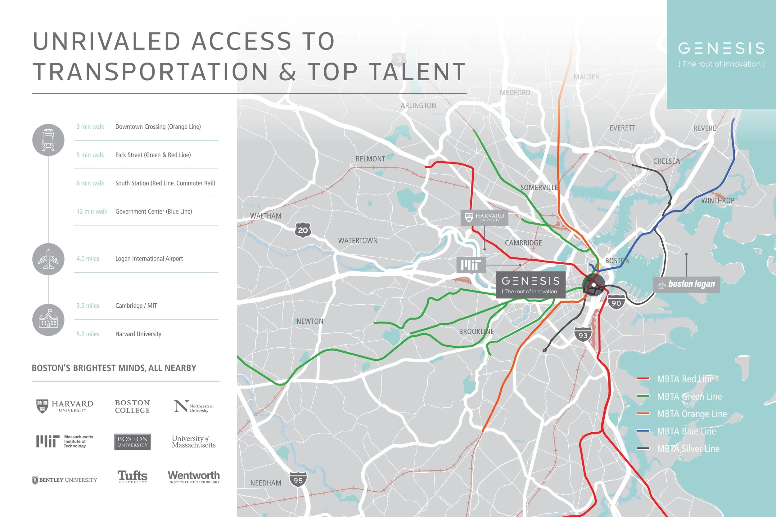 GENESIS – 55 Summer is situated in the heart of Downtown Crossing, a lively area that features a diverse array of shopping, dining, and entertainment options. Its location provides tenants with the advantage of being within walking distance to historical landmarks, cultural attractions, and urban parks, contributing to a vibrant lifestyle. The seamless connectivity to major highways I-90 and I-93 allows for convenient travel in and out of the city, while the proximity to the MBTA transit lines makes commuting straightforward. This accessibility not only simplifies daily routines but also enriches the experiences of living in one of Boston's most dynamic neighborhoods.